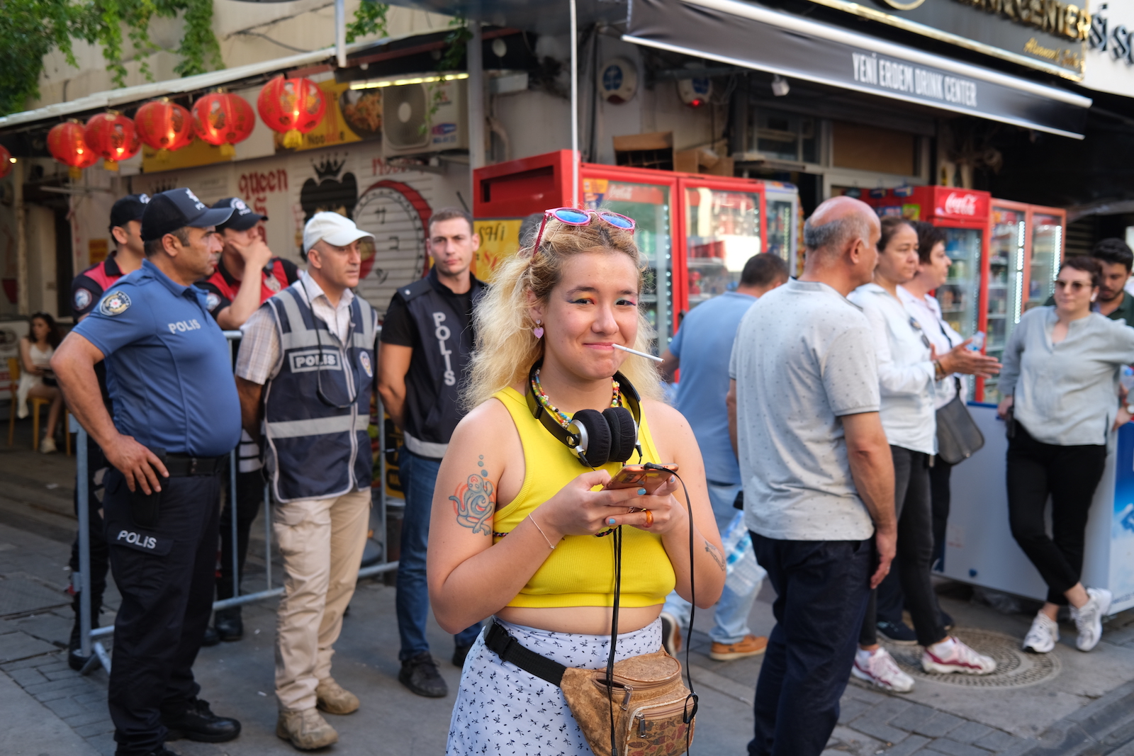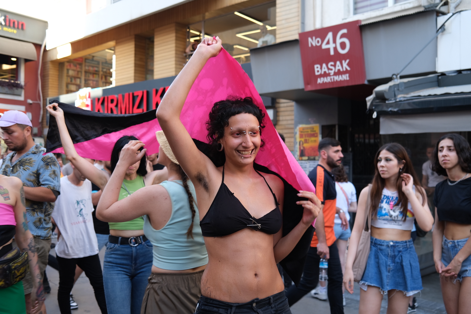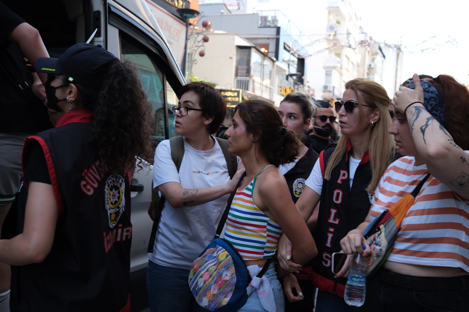 Before the march, the police didn’t allow even the lawyers from the İzmir Bar Association LGBTI+ Rights Commission to enter the street and they allowed people in after an identity check upon the objections.