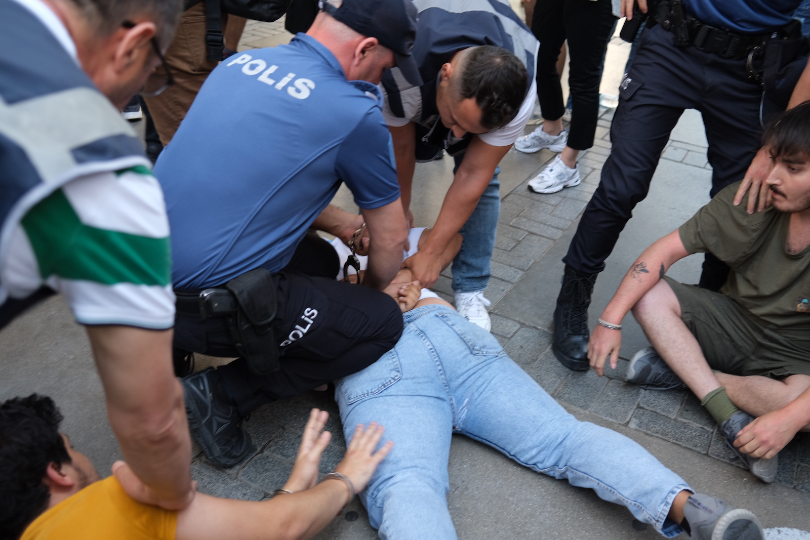 Having overcome the police violence on Kıbrıs Şehitleri Street, the LGBTI+ activists gathered in Kordon and were able to read the press statement. The police detained LGBTI+ activists here as well. At least 47 LGBTI+ activists were taken into custody during the march.