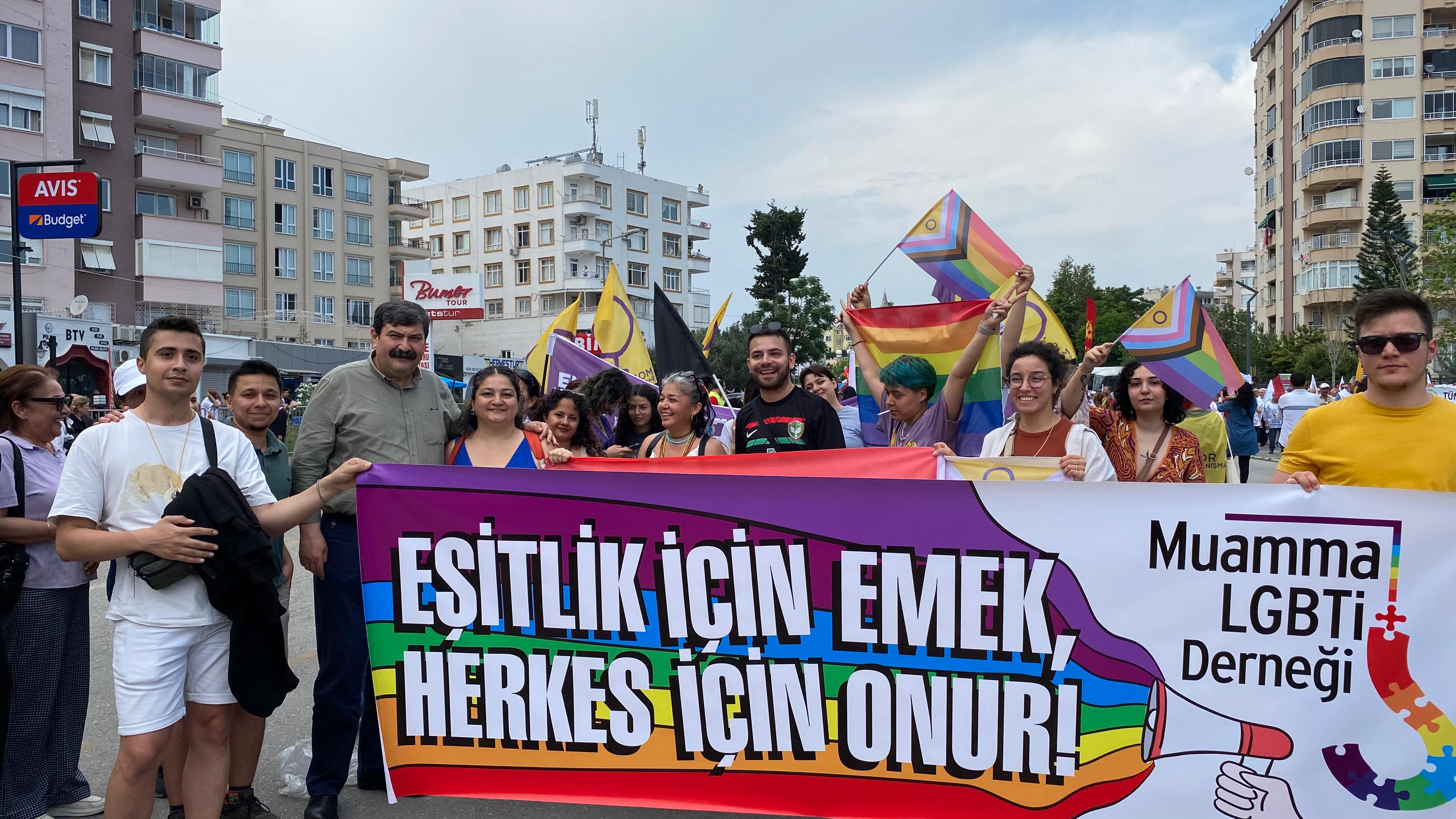 Mersin’de LGBTİ+’lar, “Eşitlik için emek, herkes için onur” pankartı arkasında yürüdü.